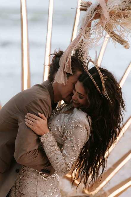 We made subtle reference to the sun and the moon throughout the styling -which was Designed & Hosted by Style Led Creatives- particularly love the details to the rings by Rhodes. Look closely and you discover the intricate carvings into the precious metals. As the rings specially designed with the all phases of the moon and textures of its surface as well. The ceremony backdrop created was magical, outlined with neon, it was a perfect backdrop against the stormy dark skies.